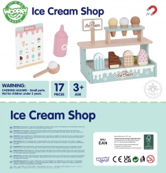 Válj fagylaltárussá a bájos, fából készült WOOPIE GREEN standdal. A pasztellszínű, biztonságos fából készült készlet tölcséreket, gombócokat és pálcikás fagyikat kínál, mágneses gombócösszekapcsolással és menüvel a boltos játékhoz. Fejleszti a finommotorikát, a képzeletet és a szerepjátékot.