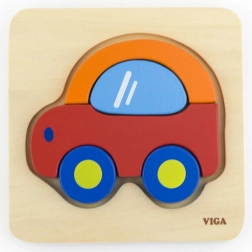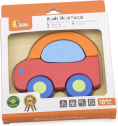 Fa blokk puzzle autó formában, VIGA márka, ellenállóságot és színes vonzerőt kínál.