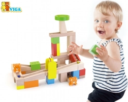 Ez a VIGA fa golyópálya órákon át tartó szórakozást és tanulást kínál. A változatos kockákból, rámpákból, oszlopokból és tölcsérből számtalan pálya építhető, amelyeken a golyók egyenletesen gurulnak. A szett dekoratív, játékos elemeket is tartalmaz, mint például lépcsők és macik, amelyek karaktert adnak az építményeknek és ösztönzik a történetmesélést.