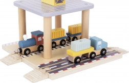 Lehetővé teszi a gyerekeknek különböző kikötői műveletek szimulálását mozgó részekkel, mint a daru, vonat és hajó.