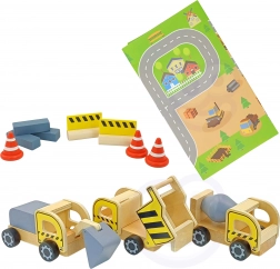 - 3 építőjármű: billenő kocsi, keverő, markoló