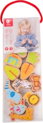 Ez a bájos fűzős játék a kreatív összeállítást és fűzést ötvözi a kedvelt állatok – például a panda, az oroszlán, a zsiráf vagy a krokodil – megismerésével. A gyerekek gyakorolják a fogást, a pontosságot és a koncentrációt, miközben saját történeteket alkotnak az állatkert világából. Ideális tevékenység nyugodt, összpontosított játékhoz otthon és útközben is.