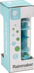 Megnyugtató zenélő játék a legkisebbeknek: a CLASSIC WORLD kék esőbotja fából és átlátszó műanyagból készül, belül színes golyók peregnek, és finom esőhangot keltenek. Elég megrázni vagy 360°-ban elfordítani, és máris vidám csörgővé változik, amely ideális a szemléleti érzékelés fejlesztéséhez és az első ritmusgyakorlatokhoz.
