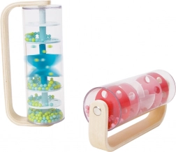 Ez a gondosan kidolgozott, golyós esőbot vizuális és hangélményt is nyújt – a golyók finoman peregnek a spirálon, és kellemes „eső” effektust keltenek. A természetes fa és a strapabíró, átlátszó cső biztonságossá és tartóssá teszi a játékot, miközben a gyerekeket a hangok és a ritmus felfedezésére ösztönzi.