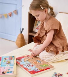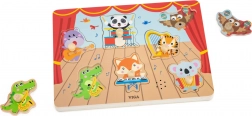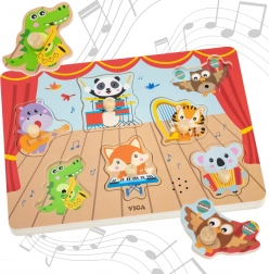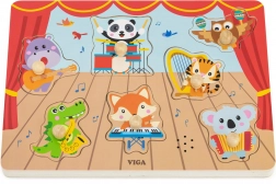 Lépj be a zene és a tanulás világába a VIGA márka eredeti fa kirakójával, ahol az állatzenészek felébresztik gyermekeid fantáziáját. Az elemek felemelése és újbóli elhelyezésekor a gyerekek valósághű hangszerhangot hallanak, ami a tapasztalati tanulást erősíti.