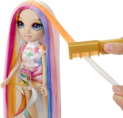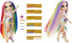 Fedezd fel a kreatív hajformázás világát a Rainbow High Amaya babával. Az ultrahosszú, könnyen fésülhető haj és a színes kréták készlete segítségével lágy pasztelles vagy élénk szivárványos tincseket is készíthetsz. A színek egyszerűen leöblíthetők, így újra és újra kísérletezhetsz.