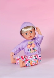 Friss, sportos stílust adj a babádnak. Ez a szett egy kényelmes, kapucnis pulóvert és egy színes nadrágot kombinál rugalmas derékkal a könnyű átöltöztetésért. A minőségi kivitel hosszú élettartamot és rengeteg szórakozást biztosít a mindennapi játék során.