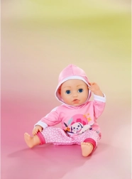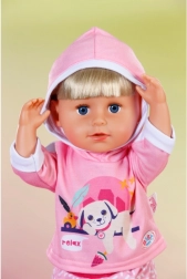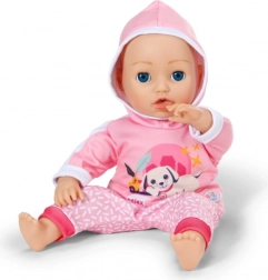 A bájos, rózsaszín melegítő szett a BABY born 43 cm-es babákhoz kényelmet és stílust kínál. A szett puha kapucnis pulóverből kutyusos mintával és hozzá illő, mintás nadrágból áll. A rugalmas mandzsettáknak és a könnyű fel- és levételnek köszönhetően ideális a mindennapos játékhoz, fejleszti a fantáziát és a gondoskodó készségeket.