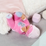 Ölelgetős és altatós társ: a BABY BORN Alvóbaba sötétrózsaszín kivitelben születéstől kezdve biztonságos kényelmet és gyengéd ingereket kínál. A puha, ölelhető test beépített csörgővel segíti a hangok érzékelését, a tapintást és az első fogásokat. Könnyű kialakítása és kellemes textíliái kímélik a baba bőrét és összebújásra hívnak.