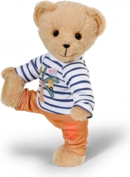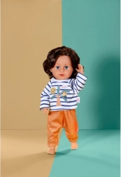 Adj a babádnak vagy mackódnak egy friss, nyári hangulatot idéző ruhát, amely a gondtalan jókedvet sugározza. A pálma- és napmintás csíkos pólót kényelmes derekú narancssárga nadrág egészíti ki. A szett kellemes tapintású textíliákból készült, hogy az öltöztetés és a játék maximálisan kényelmes legyen.