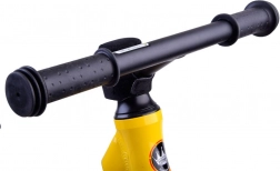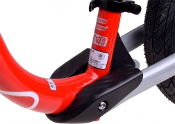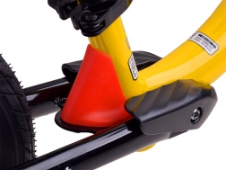 A biztonságot és kényelmet növeli a kormány elfordulásának ütközője, amely megakadályozza a hirtelen befordulásokat, az ergonomikus kormány csúszásmentes markolatokkal, valamint a gyorskioldós ülésmagasság-állítás (kb. 31–37 cm), hogy a futóbicikli együtt nőhessen a gyerekkel. A hátsó lábtartók lejtőn gurulva kényelmes lábtámaszt adnak és segítenek az egyensúly gyakorlásában.