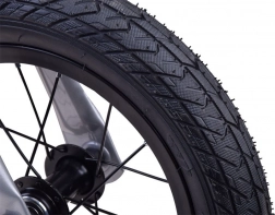 Mintázott gumik és fém küllők biztosítják a jó tapadást, a stabilitást és az egyenletes gurulást különböző felületeken.