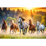 A zöld réten vágtató lovak motívuma elbűvöli a természet- és állatkedvelőket, és otthona gyönyörű fókuszpontjává válik.