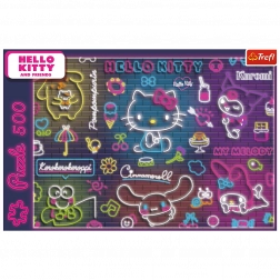 Élvezze a színes és stílusos puzzle-t HELLO KITTY motívummal, amely összeállítás után feltűnő neon képet alkot. A 500 precízen vágott darabnak köszönhetően a kirakás szórakoztató és gördülékeny, felnőtteknek és nagyobb gyerekeknek egyaránt megfelelő.