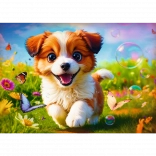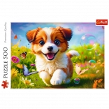 Vidám kiskutya puzzle500 darabból áll, és egy aranyos kutyát ábrázol. Az elkészült kirakó mérete 480×340 mm.