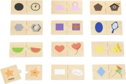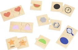 Ez a minőségi fa készlet már 18 hónapos kortól kis felfedezőknek készült. A kétdarabos kártyák az illusztrációkkal és a hozzájuk tartozó „árnyékokkal” gondolkodásra, összehasonlításra és helyes párosításra ösztönzik a gyerekeket. A élénk színeknek és a tartós kivitelnek köszönhetően a gyerekek gyorsan megszeretik a játékot, a szülők pedig értékelik annak oktató jellegét.