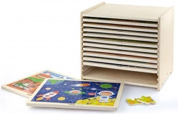 A Viga fa puzzle-készlet ideális választás az első, rendszeres kirakózáshoz. A 12 tábla mindegyike egy keretet és 24 strapabíró elemet tartalmaz, amelyek tökéletesen illeszkednek, és jól kézre állnak a gyerekek számára. Az egyszerű formák, a vidám képek és az élénk színek fokozzák a játék örömét és segítik a készségek folyamatos fejlődését.