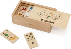 A VIGA 2 az 1-ben fa dominó dupla adag szórakozást és tanulást kínál egy csomagban. A gyerekek felváltva játszhatnak a klasszikus pontokkal és az állatpárosító oldalával, ami támogatja a természetes tanulást és fenntartja a figyelmet. A masszív fa kivitelnek köszönhetően a készlet tartós, és alkalmas mindennapos játékra otthon és útközben is.
