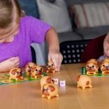 A színes nyalókákkal ellátott kockák határozzák meg, hogy melyik mopszlikat kell megtalálni, ami dinamikát és stratégiát ad a játéknak.