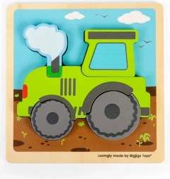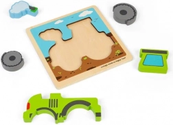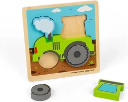 Fedezze fel a fa illesztős puzzlét traktor motívummal, melyet kifejezetten a gyermekkézhez terveztek. Öt masszív, könnyen megfogható színes darabból áll. A darabok helyes elrendezésekor a gyerekek örömet lelnek a kész zöld traktorban. A puzzle nemcsak szórakoztat, hanem támogatja: