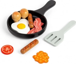Bemutatjuk a Bigjigs Toys reggeli főző készletét, amely ideális kis főzésrajongóknak. Az egész készlet minőségi, tanúsított fából készült, biztosítva ezzel a biztonságot és a környezetvédelmet. A gyerekek gyakorolhatják az angol reggeli elkészítését, fejlesztve ezzel finommotorikus képességeiket és szem-kéz koordinációjukat.