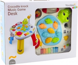 Fedezze fel a szórakoztató és fejlesztő interaktív asztalkát a legkisebbeknek, amely ötvözi a tanulást és a játékot. A állathangokat játszó zongora, a fényhatások, a kalapácsos ügyességi játék és a interaktív krokodilfej támogatják a motorikus készségek, a hallási és a kéz–szem koordináció fejlődését.