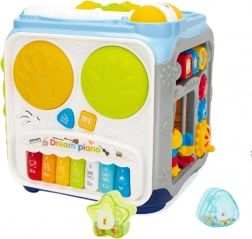 Ez az interaktív aktivitáskocka úgy lett megtervezve, hogy fejlessze a gyermekek érzékelését, finom- és nagymotoros készségeit, valamint a logikus gondolkodást. A sokszínű funkciók felfedezésre ösztönöznek, támogatják a koncentrációt és a szem–kéz koordinációt, és motiválnak az önálló és közös játékra.