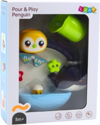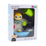Az interaktív fürdőjáték pingvin és más tengeri állatok motívumával rengeteg nevetést és felfedezést hoz a gyerekeknek. Víz ráöntése után az állatkák megpördülnek és mozgásba lendülnek, ami felkelti a kíváncsiságot és meghosszabbítja a fürdés idejét. A csomag része egy lyukacsos pohár is az átöntögetéshez, amelynek segítségével a gyerekek játékosan sajátítják el az ok-okozati összefüggéseket.