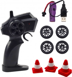 A csomag tartalmaz további drift abroncsokat is, amelyek megkönnyítik a kontrollált csúsztatásokat, valamint bójaszettet saját gyakorlópálya kialakításához. A USB-n keresztül tölthető akkumulátor megszünteti az eldobható elemek szükségességét, gazdaságosabb és hosszabb játékidőt biztosít.