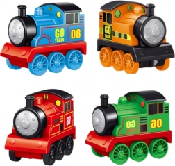 Ez a készlet négy különböző színű mozdonyt tartalmaz, amelyek lehetővé teszik a gyerekeknek, hogy saját játékszcenáriókat hozzanak létre, pályákat állítsanak össze, és masinisztát játszanak. A játék kiváló minőségű műanyagból készült, amely teljesen biztonságos a gyermekek számára. A mozdonyok kompakt méretűek, ami megkönnyíti azok megfogását és mozgatását a gyermekek kis kezében.