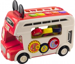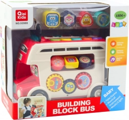 A busz betűkkel ellátott kockáknak szánt nyílásokkal van felszerelve, amelyeket a gyermek az adott helyekhez igazíthat, így fejleszti megfigyelőképességét és mozgásának pontosságát. Az oldalsó falakon forgó mechanizmusok és interaktív elemek találhatók, amelyek további érzékszervi ingereket biztosítanak és aktív felfedezést támogatnak.