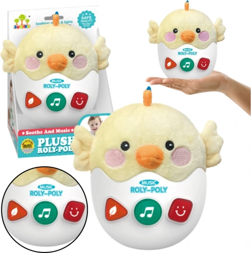 A csibe gombokkal van ellátva, amelyek hangokat és dallamokat adnak ki, stimulálva az érzékeket és támogatva a gyermeki készségek fejlődését.