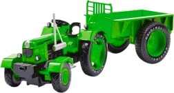 Masszív szerkezet fémből és minőségi műanyagból, amely biztosítja a tartósságot még intenzív játék közben is. A gumikerék garantálja a kiváló tapadást különböző felületeken, míg az elforgatható első kerekek és a mozgatható kormány lehetővé teszik a gyermek számára a pontos manőverezést. Ezen tulajdonságok révén a játék még valósághűbb, és a gyerekek utánozhatják a valódi mezőgazdasági munkákat.