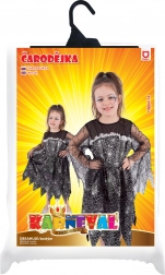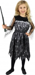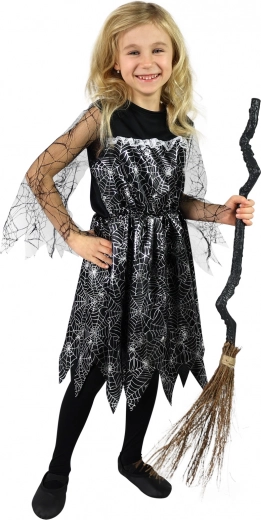 Mágikus karneváli jelmez kis boszorkányoknak! Ez a lenyűgöző fekete jelmez pókhálómintával garantáltan elbűvöl a karneválokon és a Halloween alkalmával is.