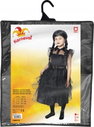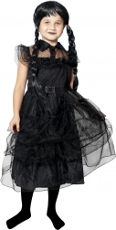 A gazdagon rétegzett, fodros, fekete gótikus ruha elbűvölő, kissé titokzatos megjelenést varázsol, amely minden bulin kitűnik. Ez a lányoknak szánt gyerek jelmez Halloweenre és farsangra egyaránt kiváló, szerepjátékhoz, iskolai műsorokra és tematikus ünnepségekre is.