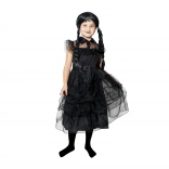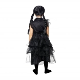 Változtasd a buli kis sztárját titokzatos dámává. A fekete, rétegezett ruha finom fodrokkal és dekoratív övvel elegáns, gótikus megjelenést ad, amely minden partin, farsangon és iskolai jelmezes bálon kitűnik.