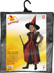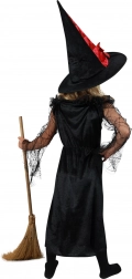Változtassa a kis boszorkányokat minden buli sztárjává. Ez a fekete–piros jelmez finom csipkerészletekkel és pókhálómintás ujjakkal stílust és kényelmet kínál. A ruha kellemes viselet, kiegészíti egy masnis, hegyes kalap, amely varázslatosan feldobja az összképet.