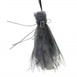 Add meg boszorkányjelmezednek a tökéletes lezárást! Ez a fekete–szürke, elegáns boszorkányseprű ezüst csattal és finom tüll „szoknyával” minden lépésnél látványos. Könnyű kézben tartani, így jól lehet vele pózolni és táncolni is a parketten.