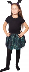 Varázslatos átváltozás a könnyű, csillogó tüllszoknyával és a stílusos, denevérszárnyas fejpánttal. A szett tökéletes Halloweenre, farsangra, iskolai műsorokra és tematikus bulikra.