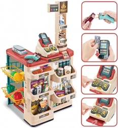 A WOOPIE gyerekbolt kis szupermarketté varázsolja a szobát. A gyerekek eljátszhatják az eladó és a vásárló szerepét, a termékeket világító, hangos szkennerrel beolvassák, a gyümölcsöt valódi mérleget utánzó mérlegen lemérik, a pénztárnál pedig készpénzzel vagy kártyával fizetnek. A csomagban stabil bevásárlókocsi is található az még élethűbb élményért.
