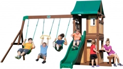 A Lakewood játszószett vonzó gyerekjátszótérré varázsolja a kertet. Okos elrendezésének köszönhetően kisebb helyre is befér, mégis bőséges elfoglaltságot nyújt – a kényelmes lépcsős feljutástól a tetős kilátóplatformon át a sima és gyors csúszdáig. Az alsó rész használható búvóhelynek, játéktárolónak vagy későbbi homokozónak.