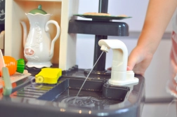 A pumpa megnyomásával víz folyik a csapból. A zárt körnek köszönhetően a játék tiszta, szórakoztató és rendetlenségmentes.