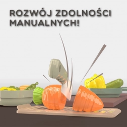 - A képzelet és a finommotorika fejlesztése a tépőzáras szeletelős ételekkel és a szerepjátékos tevékenységekkel.