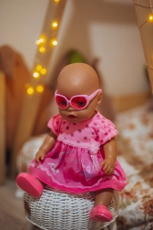 Adj új stílust babádnak a WOOPIE elegáns rózsaszín szettjével. A cuki nyuszis ruha, az összeillő cipőcskék és a napszemüveg minden játékot vidám divatbemutatóvá varázsol. Tökéletesen illik a 43–46 cm méretű babákra.