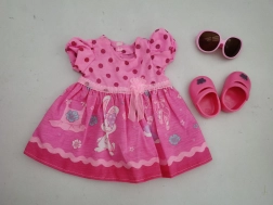 - rózsaszín nyuszis ruha, cipőcskék, napszemüveg