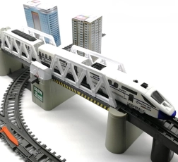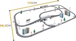 Ez a modern WOOPIE elektromos vasútpálya hosszú órákon át tartó szórakozást és tanulást kínál a gyerekeknek. Az öt kocsiból álló Pendolino szerelvény a 9,14 m hosszú pályán száguld, piros fénnyel világítja meg az utat, és a sebességszabályozásnak köszönhetően könnyen igazodik a játék üteméhez. Remek attrakció a gombbal vezérelhető emelhető híd és a dekoratív alagút, amelyek izgalmat és élethűséget adnak az utazásnak.