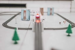 A modern mozdony piros fénnyel világít, és lehetőséget kínál a sebesség beállítására, így a haladást kisebbekhez és nagyobbakhoz is igazíthatod.