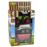 A készlet egy valósághű traktort tartalmaz fény- és hanghatásokkal, valamint két mezőgazdasági gépet, amelyek a mindennapi mezei munkát szimulálják. A traktor tetején három funkciógomb szolgál a motorhang, a duda és a tolatási hang aktiválására, amit az első fényszórók világítása még élethűbbé tesz.