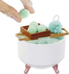 Ideális ajándék gyűjtői miniatúrák rajongóinak és kreatív gyerekeknek. A mystery ball formájú kapszula izgalmassá teszi a kicsomagolást, miközben a funkcionális kiegészítők – a mini „fürdőktől” a szappanokig és a sókig – élethű élményt nyújtanak miniatűr méretben.
