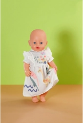 Könnyű, légies ruha fodros ujjakkal, amelyet egyszerű feladni, és remekül illik a 43 cm-es babákra.